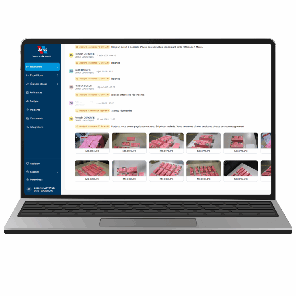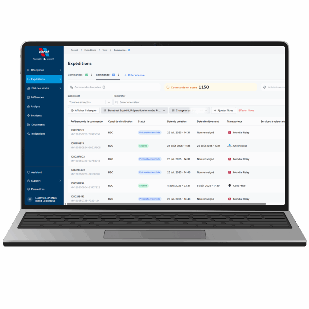 Vision globale (in/out) transparente et en temps réel des statuts de préparation et réception remontés par l’entrepôt ainsi que les états de livraison transport.